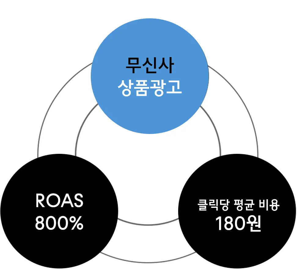 이러한 설정을 통해 평균 ROAS 750%로 전체 평균 성과와 유사한 수준을 기록하였습니다.