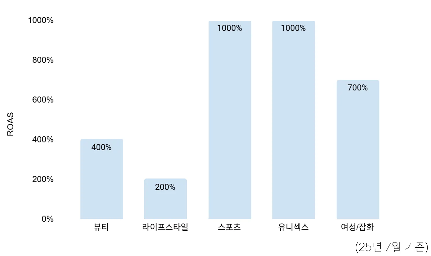 객단가에 따른 카테고리별 편차는 존재하나, 평균 ROAS 800% 고효율로 운영되었습니다.