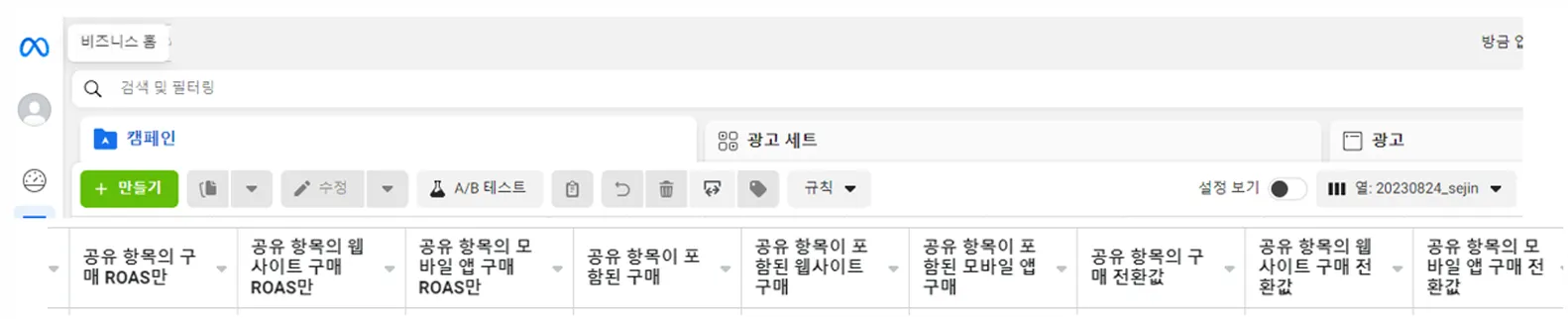 ※ 다만, 메타 광고 대시보드와 데이터가 일치하지 않기에 상품 별 구매 트렌드를 파악하는 용도로 활용하시길 바랍니다.