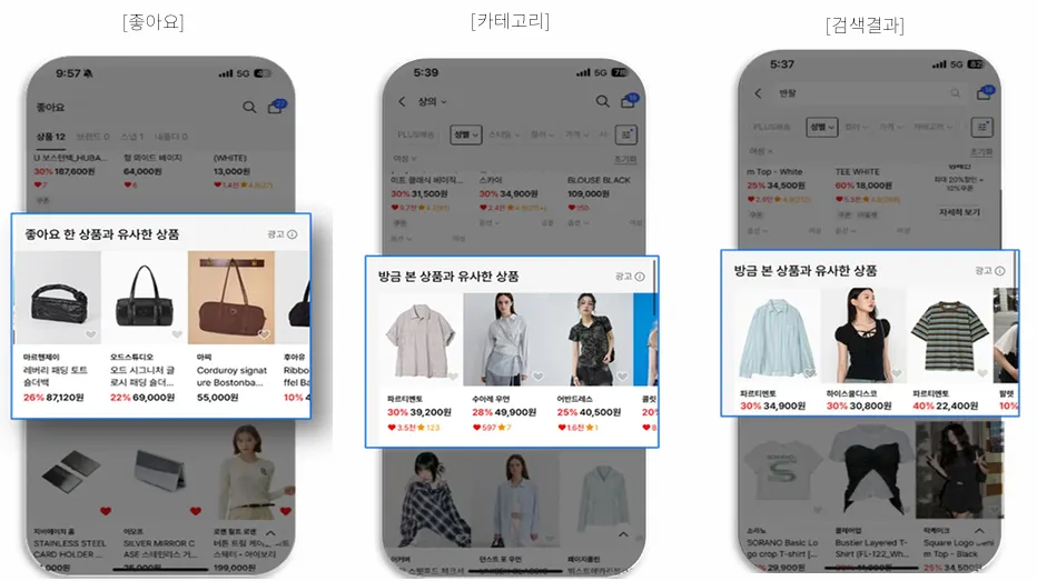 맞춤형 지면 노출을 통해 고객에게 효과적으로 도달하며, 상품을 인지하고 구매하는 여정 곳곳에 상품을 노출하여 새로운 고객을 발굴합니다.