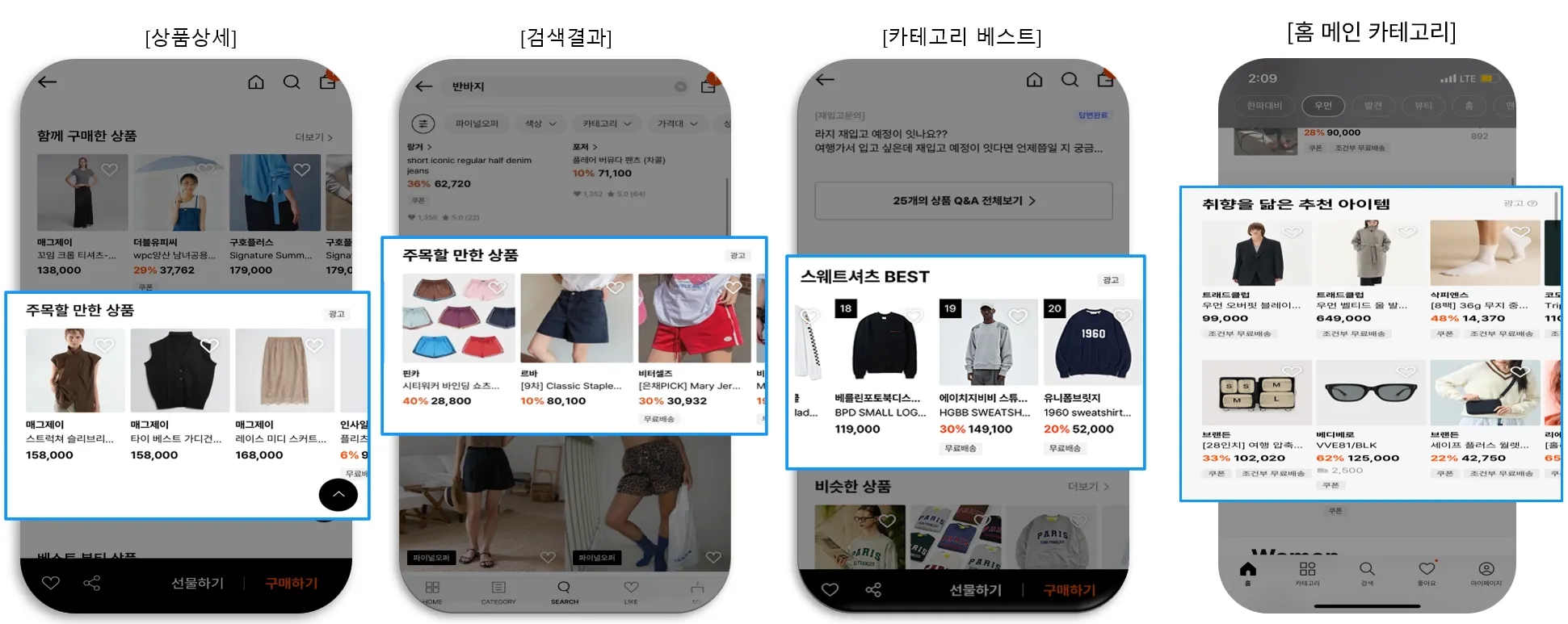 위 지면들이 현재 운영 중에 있으며, 노출 지면은 지속적으로 추가/변경될 수 있습니다.