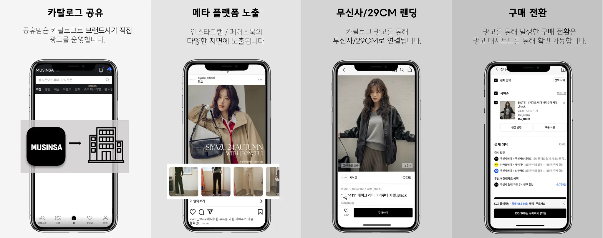 무신사/29CM가 공유한 브랜드의 카탈로그를 활용하여 외부 채널 사용자에게 ‘광고를 노출 & 전환을 유도’하는 광고입니다.